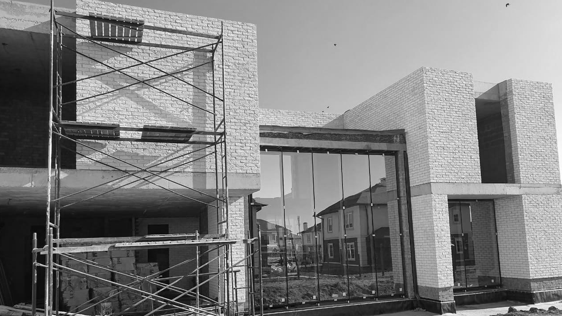 Дом в поселке Ростовской области строился в плотном окружении соседних зданий, поэтому для него создали естественную зеленую оболочку: высадили на участке густые деревья и кустарники. Конструкции и материалы подчеркивают современный характер дома: фасад из светлого затертого кирпича, деревянные окна от пола до потолка. Из дерева и стекла целиком выполнена и центральная часть здания высотой более трех метров, где располагается гостиная.